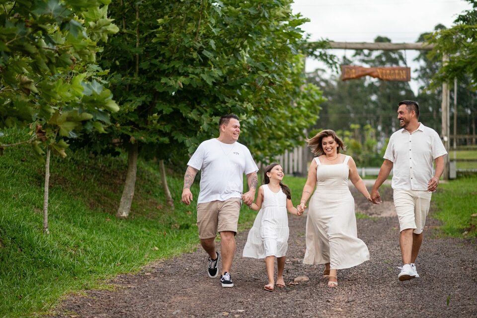 O ensaio da Família Kras aconteceu em Três Cachoeiras, no Rio Grande do Sul, em um cenário que une natureza, tranquilidade e aquele clima acolhedor do sul do país.