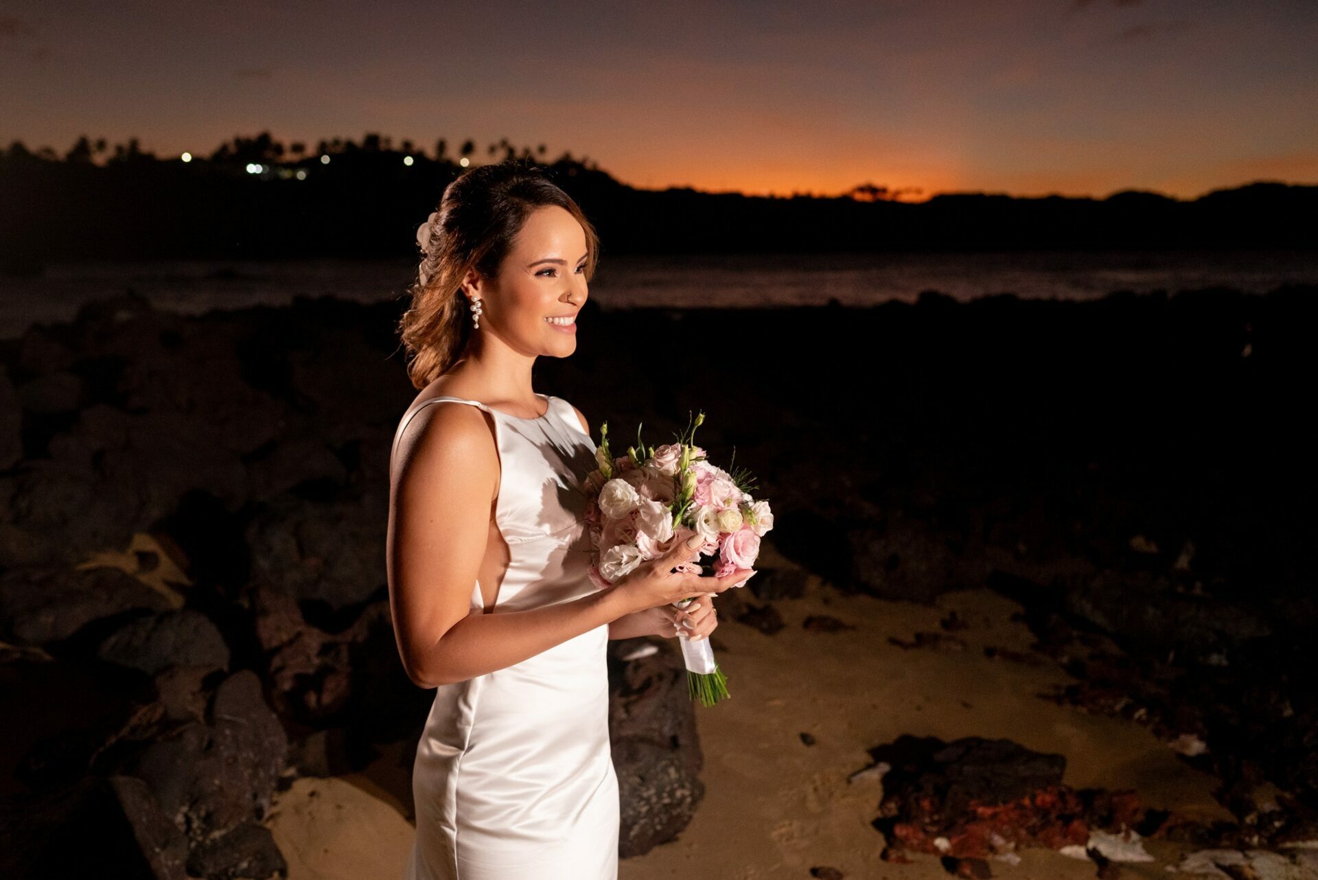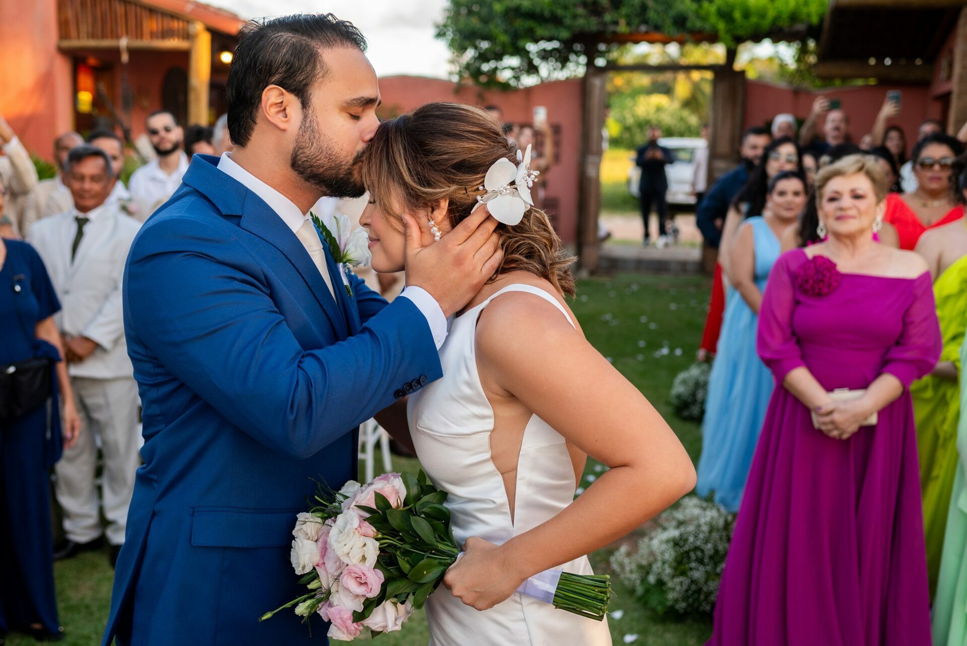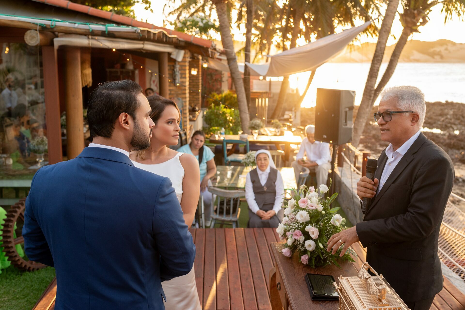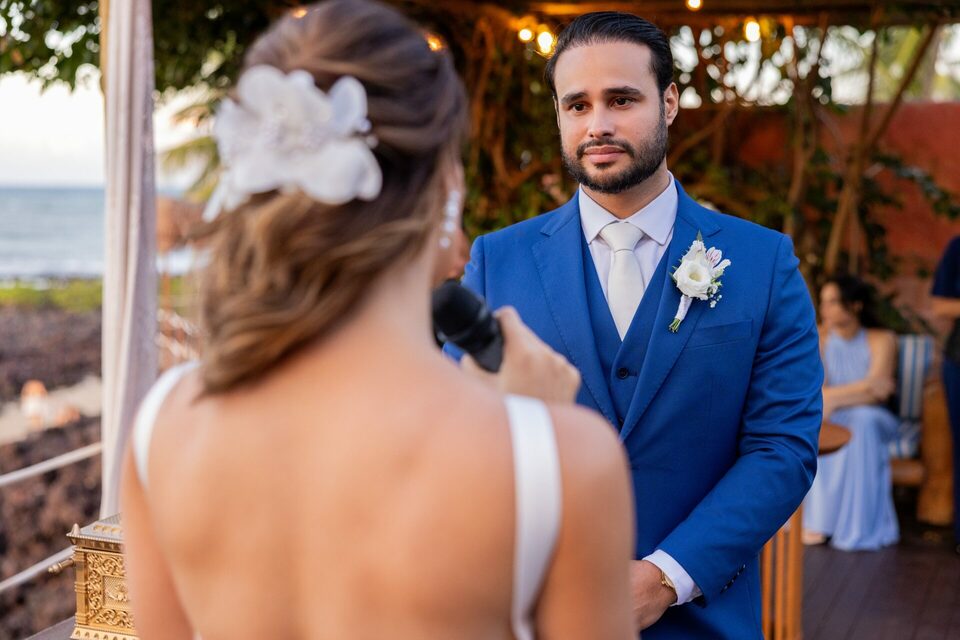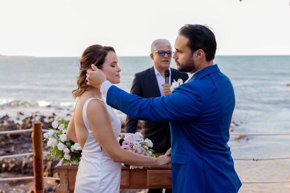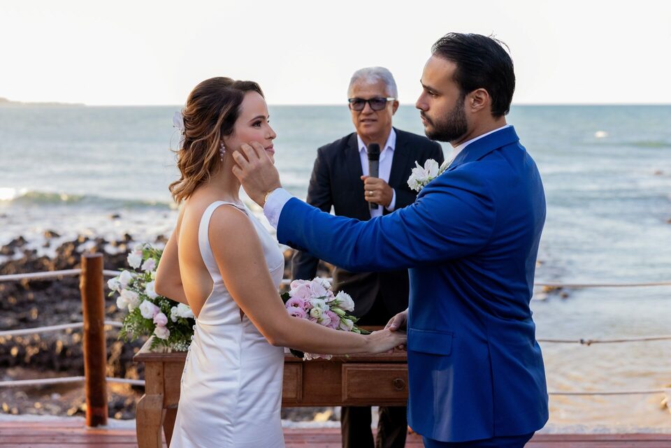 Talita e Rodrigo escolheram a Praia de Tabatinga para viver esse dia — e não poderia ter sido mais a cara deles. O fim de tarde trouxe aquela luz suave, dourada na medida certa, o vento leve passando, o som do mar acompanhando cada palavra dita.